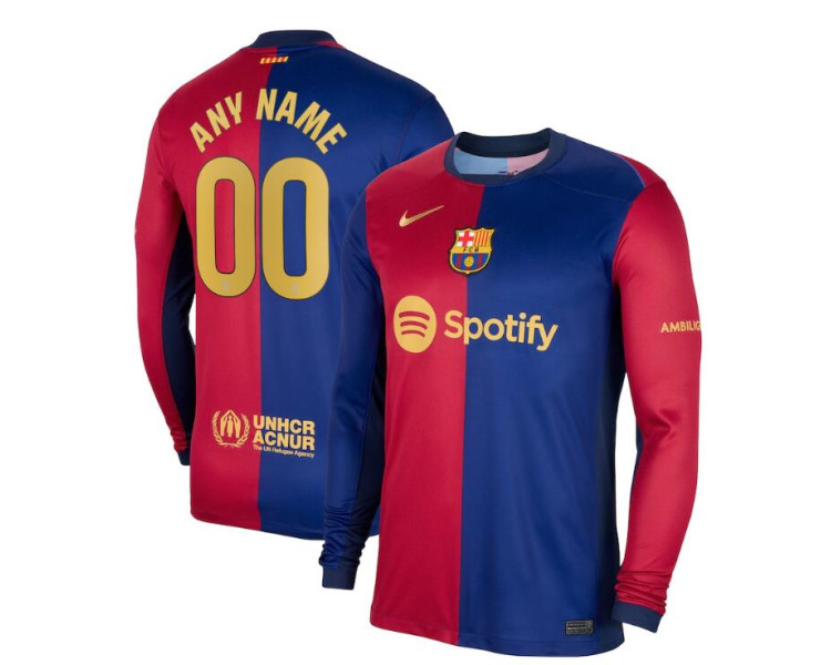 Get ready for Barcelona match day with this new arrival 2024/25 shirt. This Barcelona Home 2024/25 Authentic Red/Navy Long Sleeve Customize Jersey is inspired by those worn on the pitch by your favorite club. The Dry fabric move sweat from your skin for quicker evaporation, helping you stay dry and comfortable while you cheer on Barcelona through La Liga and the Champions League.